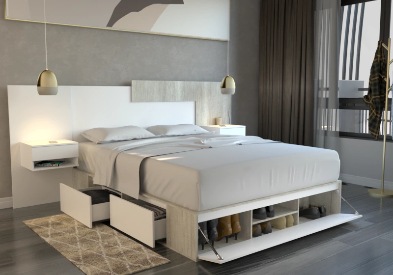 Si buscas una cama simple, linda, práctica y con mucho espacio de guardado, esta cama es para vos. Hecha para colchones de 1,60m x 2,02m. Consultá por nuestras variantes y opciones de respaldo. Mirá la info: