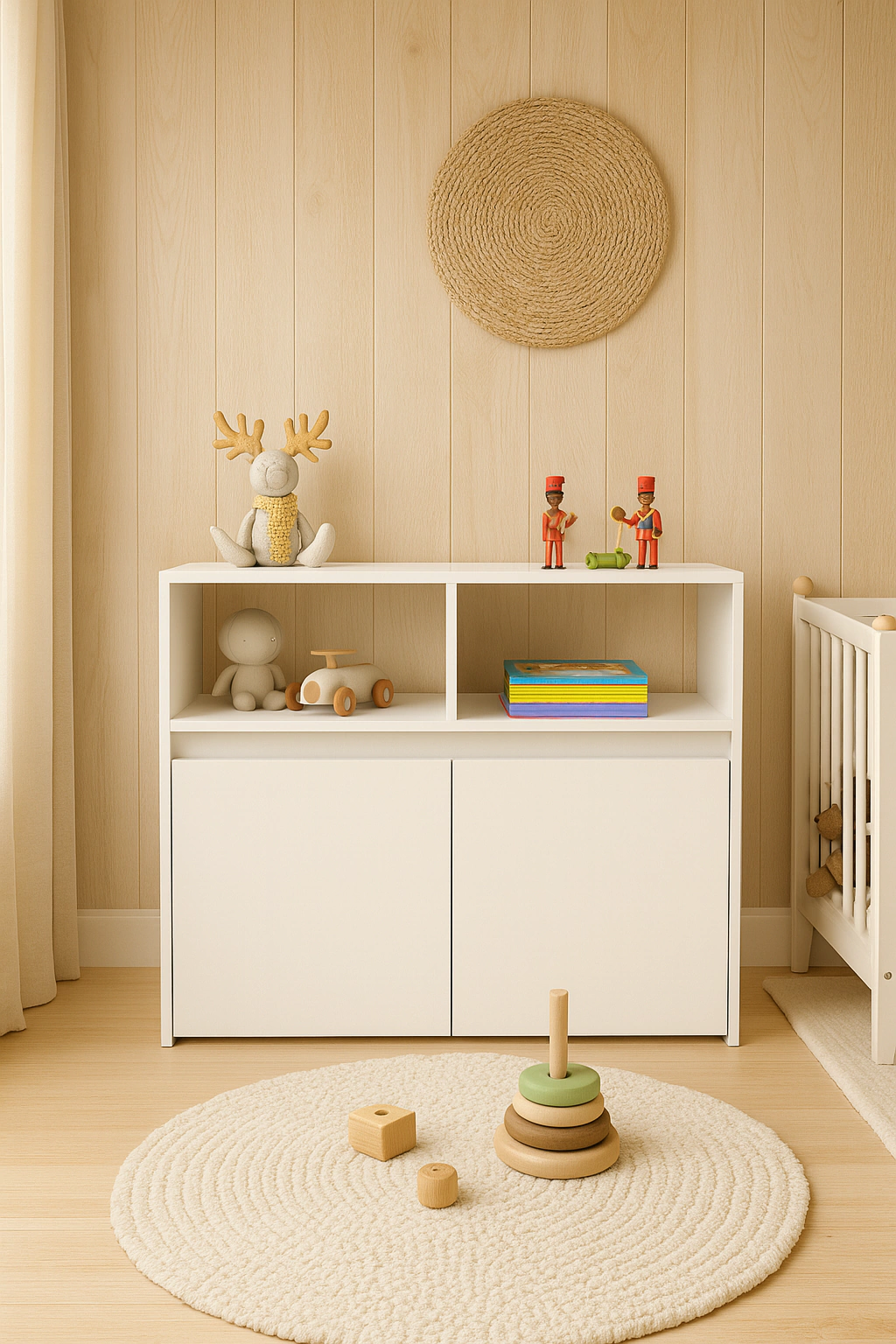 Si buscas un organizador lindo, cómodo, práctico y espacioso. Este juguetero es ideal para vos. Su diseño simple y funcional (con rueditas en los cajones) se adecua a todo tipo de espacio. Mirá la info: